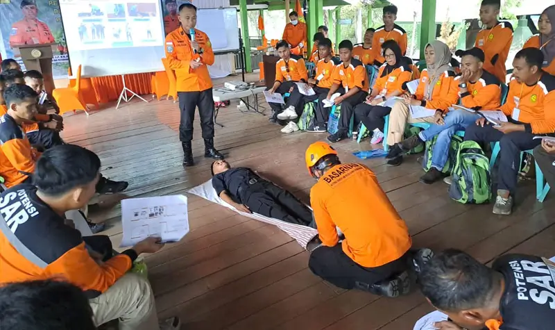 Materi yang diberikan dalam pelatihan mencakup berbagai aspek penting, seperti substansi Basarnas, pengantar pertolongan pertama, pemindahan dan penilaian korban, kedaruratan lingkungan, navigasi darat, teknik pencarian (ESAR), survival, PPM, komunikasi SAR, evakuasi, serta penggunaan tandu darurat.